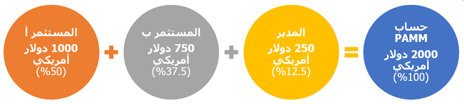 في حساب PAMM فوركس، بعكس نسخ التداول، تتجمع كل الأموال القادمة من المستثمرين ومدير PAMM في نفس حساب PAMM ثم يتحكم بها المدير.